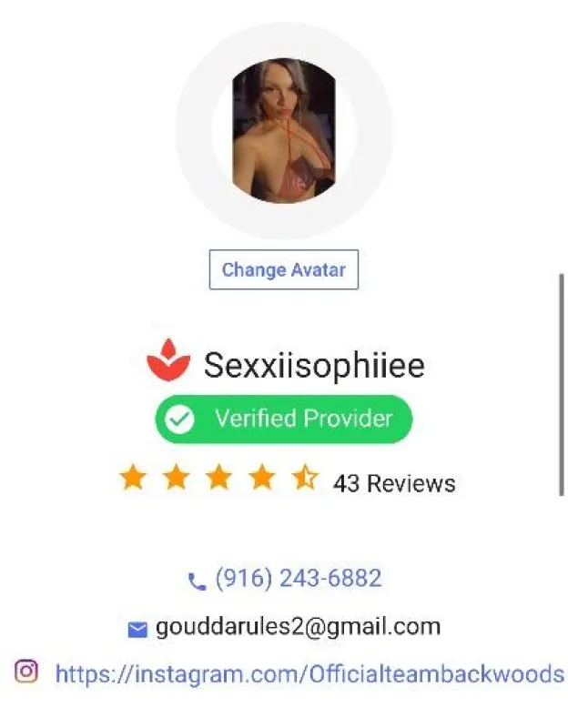 Hey fellas 👋💋 My name is Sophie 💋💋🥂 Please keep it classy Absolutely NO BB 🚫 Make sure to be extra fresh for me 🛁 Keep it respectful as I will respect you also ✨Let me put your mind at ease by providing top notch service that caters to you.💆🏽♂ I can help you relieve tense muscles with a nice massage. ❗I also am able to do private events or parties. 🥂I cater to most fetishes Such as ✅Domination /✅ Pegging/ ✅Role Play/✅Golden Shower (giving) , (Im A DOM) 📲📲⤵⤵⤵⤵⤵⤵📲📲 ✅🌐SOCIAL MEDIA ACCOUNTS & PD ACCOUNT WITH REVIEWS PROVIDED IN PHOTOS 🎀 ONLYFANS 🎀- @teambackwoods95 🎀 INSTAGRAM 🎀- @Officialteambackwoods 🎀 PRIVATE DELIGHTS🎀- Sexxiisophiiee